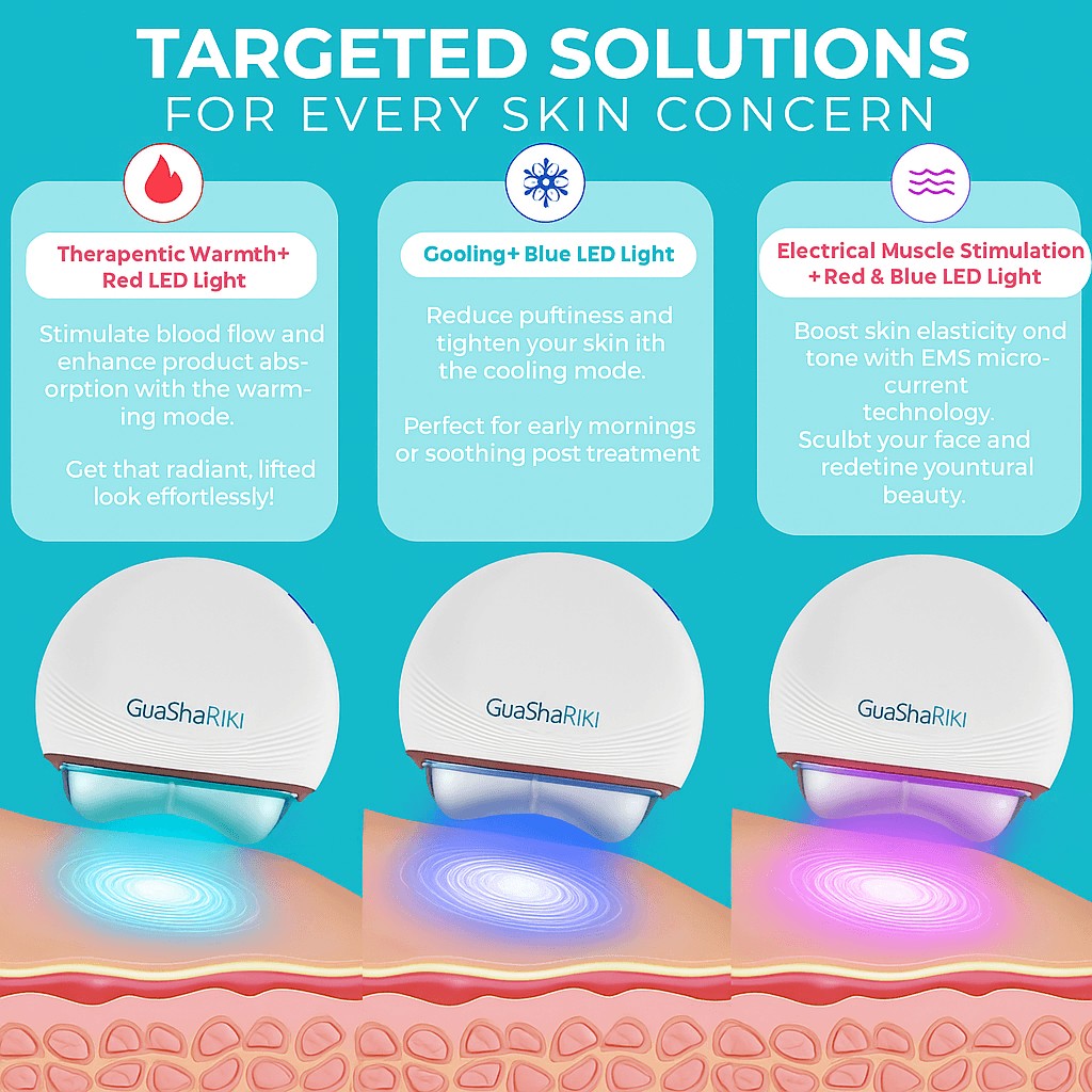 GuaShaRiKi™ combines that withKorean beauty technology— LED therapy, EMS muscle stimulation, and heat/cool modes — giving you faster, more visible, and longer-lasting results.